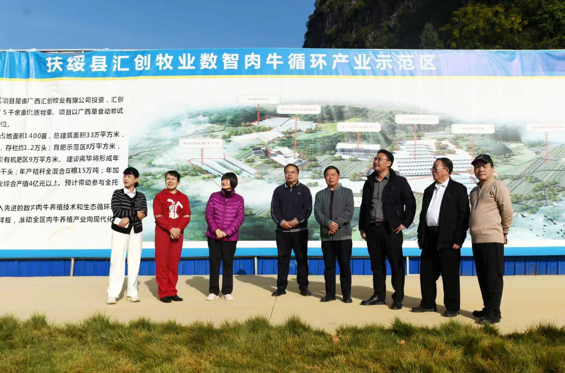 李锋一行还深入位于该县岜盆乡的广西创汇牧业有限公司和隶属于岜盆乡的弄廪村渠茗屯,进牛场、入地头,实地了解现代科技在农牧业领域的应用情况。弄廪村渠茗屯是崇左市老科协和扶绥县老科协助力乡村振兴技术服务联系点。李锋对市、县两级老科协这些年来在送技下乡、以技赋农、送技助企方面所做的工作和取得的成绩,表示赞许,对怎么样通过“送技”助推该联系点发展“猴村”系列产品和产业提出了要求。他说,各级老科协要把“送技”与促进高质量发展“猴村”系列产品和产业结合起来,在助力统一品牌、统一种植、统一收购、统一加工、统一包装、统一销售上下工夫、求实效。