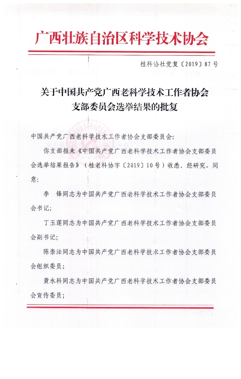 关于中国共产党广西老科学技术工作者协会支部委员会选举结果的批复