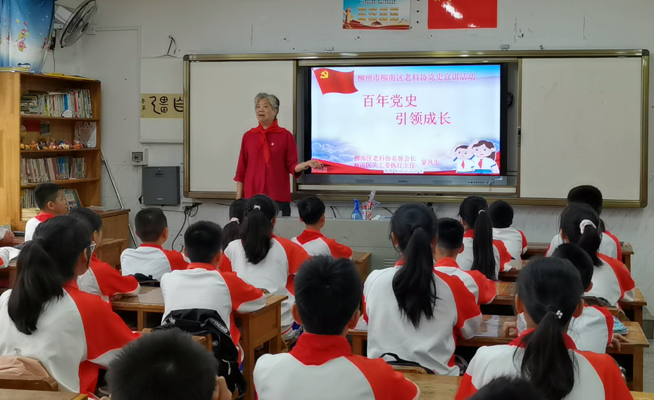2O21年是中国共产党成立100周年,为深入开展党史学习教育活动,学习贯彻习近平新时代中国特色社会主义思想,回顾党的光辉历程,歌颂党的丰功伟绩,5月24日上午,柳南区老科协由名誉会长蒙凤生带队,组织5名科普宣传讲师团成员,到柳州市河西小学给同学们上了“童心向党,争做追梦人”主题党课,在学校师生中引起了良好的反应。