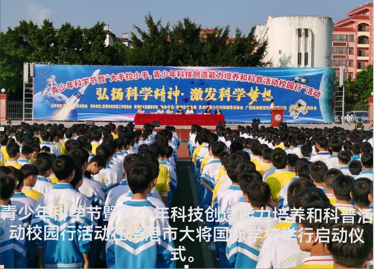 贵港讯 10月27日,由贵港市科协主办,贵港市老科协等单位承办的“弘扬科学精神·激发科学梦想”青少年科学节暨“大手拉小手,青少年科技创造能力培养和科普活动校园行”活动在贵港市大将国际学校隆重举行。贵港市老科协会长宋宾在活动仪式上讲话,对活动的举行表示热烈祝贺,并祝活动取得圆满成功。