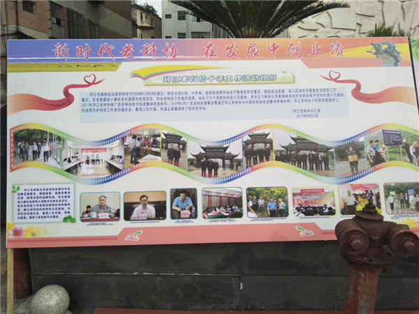 为了迎接河池市老科协在我县召开全市11个县区老科协工作会议,我县老科协设计制作了三版老科协工作活动文化宣传板报,该板报共收集几年来老科协的工作活动55张图片和文字报道,图片中有广西老科协会长蒋济雄、河池市老科协领导来我县老科协考察的图片,以及我县委黄荣彪书记、县政府县长黄炳峰在老科协召开会议讲话的图片。板报设计新颖、图文并茂,很有观赏价值。于5月25日在县府大院竖立后,吸引许多行人驻足观赏。