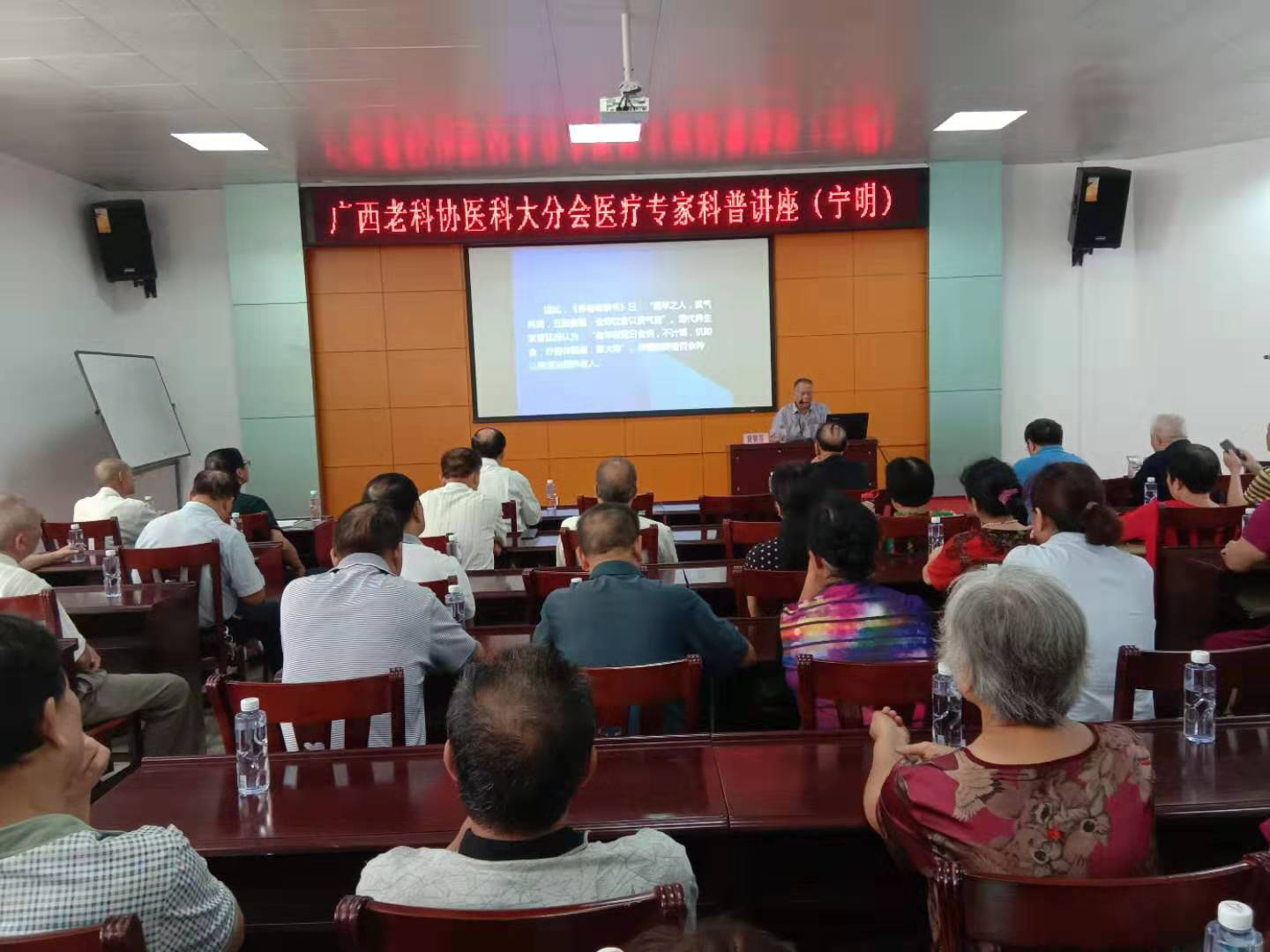 8月8日至9日,以广西老科协第一副会长李峰为组长的广西老科协“不忘初心 牢记使命”党旗领航医疗专家组一行6人到宁明县开展走基层活动,为宁明县卫生医疗系统及老干部开展医学学术讲座。崇左市老科协会长黎志敏、副会长陆宏光及宁明县委常委、县委办主任、宣传部部长、副县长农铖荫参加活动。
