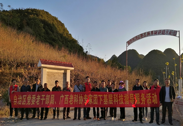 11月18日至20日,应自治区老干部局的邀请,我会组织种养专家一行4人,在老干局办公室吴谈东副主任带领下,赴老干局定点帮扶的凌云县的泗城镇和加尤镇开展八角、油茶病虫害防治,桑蚕种养,牛心李、红心柚水果种植以及养鸡、养猪、养牛的技术培训。