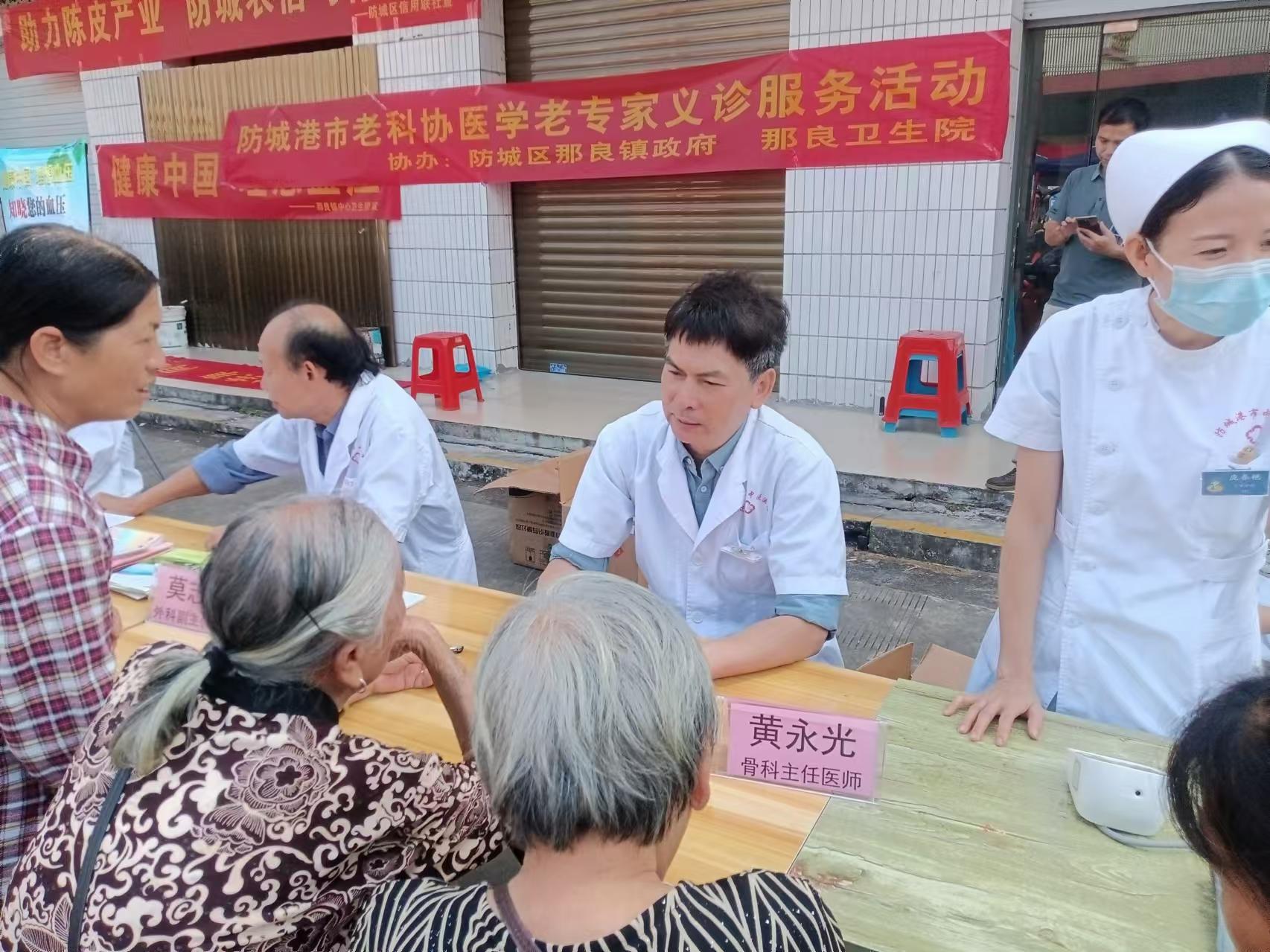 医学老专家服务队,由已退休的黄永光(主任医师京族医药名医工作室领衔人)、叶秀娟(主任医师叶秀娟名医工作室领衔人)和五位副主任医师组成,服务活动内容涵盖了中西医疗、卫生保健、现场理疗和咨询、分发相关科普资料和小奖品。