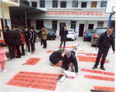 ▲2019年2月1——3日,陆川县老科协举办义写春联活动。组织理事会员免费为会员、群众写春联,得到群众称好及赞誉!