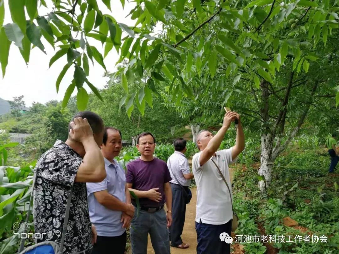 日前,由隆林县老科协会长黎胜(县人大常委会副主任,在职)、县科协副主席罗光灿带队一行6人考察组到凤山对核桃、油茶示范点进行考察。在凤山县政协副主席卢发强、县老科协常务副会长苏学进、县水果局副局长贺佳君陪同下,考察组到凤城镇弄者村核桃示范基地、县老科协久文油茶矮化早丰基地参观。贺佳君详细介绍了核桃基地管理及生产效益情况,考察组看到核桃林枝繁叶茂,果实累累,认为凤山的技术经验值得学习借鉴。在久文油茶矮化早丰基地,考察组详细了解品种、修枝整形技术方法,赞赏凤山油茶高产种植新经验。