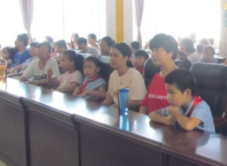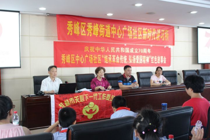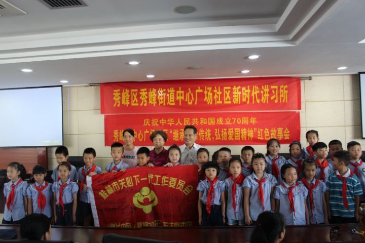 听取共和国英模事迹报告的人员有桂林市秀峰区秀峰街道办事处中心广场社区的学生及其家长等共100多人。