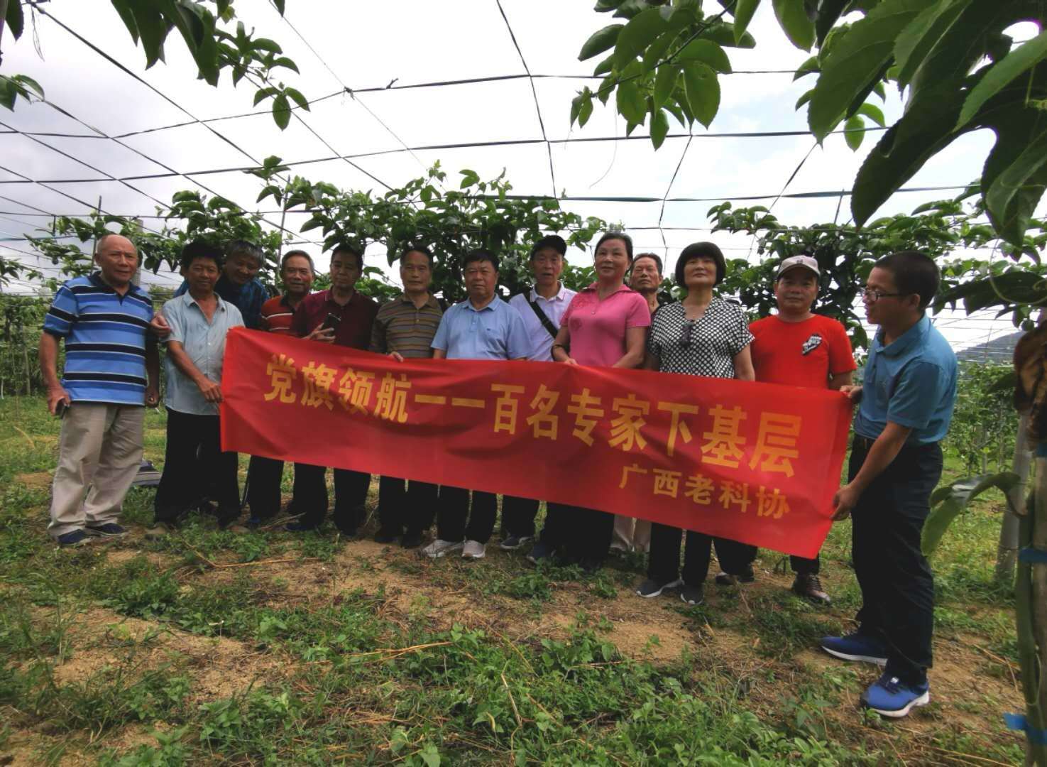 2020年8月10日至12日,广西老科协、桂林市老科协、全州县老科协联手开展“党旗领航——百名专家到基层”活动,组织老科技工作者到距离桂林市区171公里、距离全州县城38公里的东山瑶族乡黄腊洞村位于杉树凼的杨氏百香果栽培示范基地进行工作调研和技术指导,检查“三级”老科协共建百香果种植示范基地的情况,带领老科技工作者进行现场指导,助力精准扶贫和巩固扶贫攻坚成果。